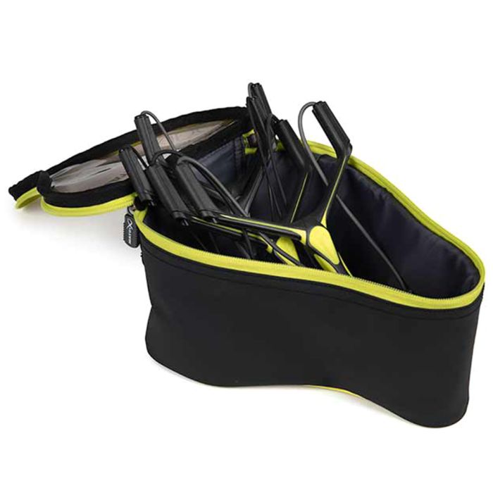Plaats je katapulten en reserve-elastieken in de case. Gebruik de gevoerde compartimenten om beschadiging tijdens transport te voorkomen.