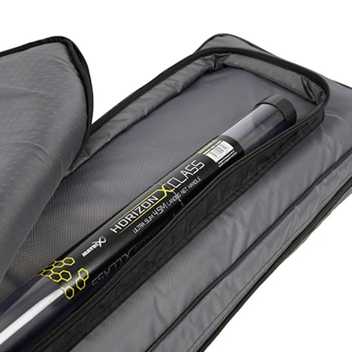 An outer pocket adds an extra layer of utility, providing an ideal space for storing landing net handles and brollies. This dedicated compartment helps you keep your accessories organised, enabling quick access when you're out on the water, thus saving you time and effort.