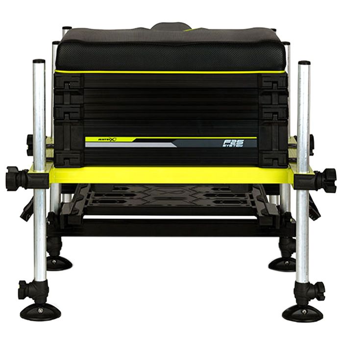 De F25 zitkist is ontworpen om robuust, lichtgewicht en duurzaam te zijn. Hij is voorzien van 6x25mm tele-verstelbare ronde poten met draaibare modderpoten voor extra stabiliteit op oneffen terrein - allemaal uitgevoerd met schroefdraad pootdoppen.