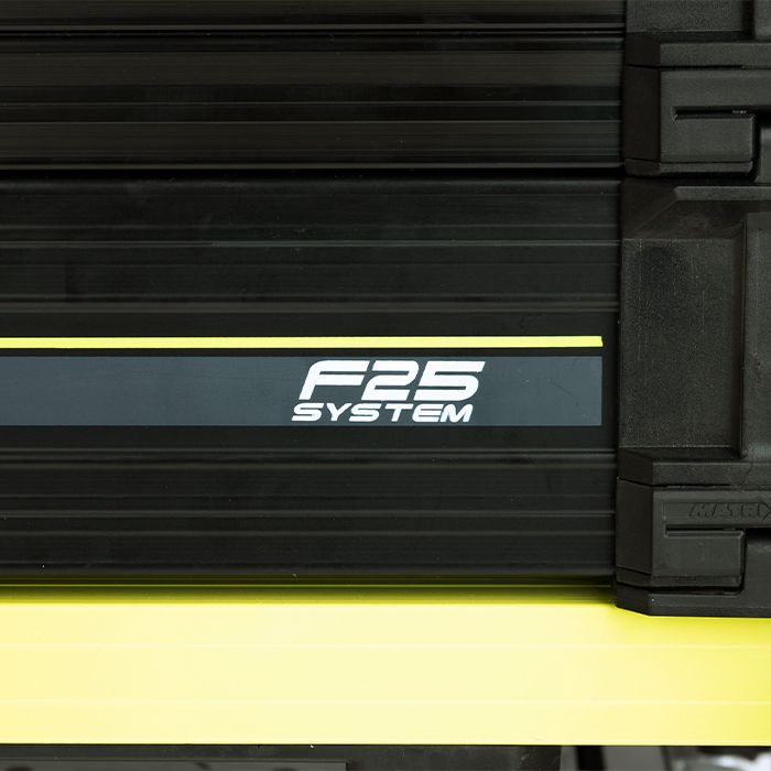 De F25 Zitkist MKII heeft een afneembare gevoerde riem, zodat je je comfortabel voelt tijdens het pendelen. Uiterlijk heeft de zitkist een contrasterend lime frame en zwarte voetplaat om de andere wedstrijdvissers jaloers te maken, en een niet-kras schuivend vergrendeling mechanisme voor de voetplaat.