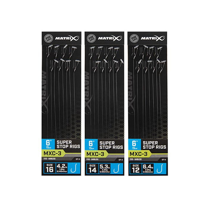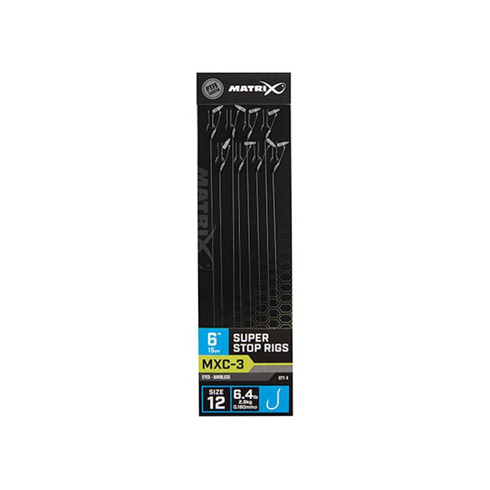 Ontworpen voor gebruik als hengel of feeder onderlijnen. Ideaal voor het vissen op maïs, pellets of vlees. Nauwkeurig gebonden op 6 inch (15cm) die veilig kunnen worden opgeborgen in Matrix onderlijnen dozen. De MXC-3 PTFE gecoate haken hebben een naar buiten gedraaid oog voor een betere presentatie van de hair tuigage. Matrix Super Stop perfect voor het hair tuigen van zacht aas. Gemaakt van Power Micron monofilament.