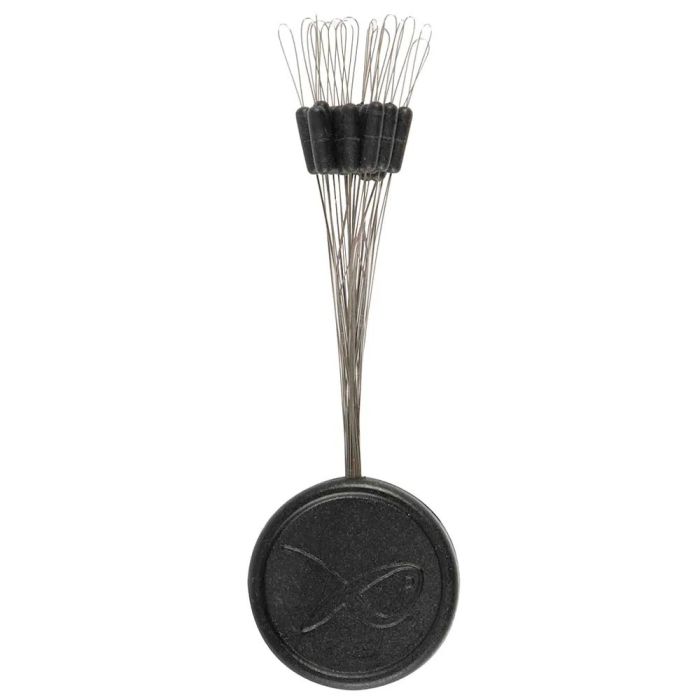 Matrix Slim Line Rubber Stops The Matrix Slim Line Rubber Stops have been designed as a neat, compact and tidy solution for both your float and feeder fishing rigs. The profiled design of these stops ensures that they sit straight on your line creating a streamlined rig, which minimises the risk of tangling either on the cast or when reeling in. Made from an extremely durable TPR material, the slim elongated shape of these stops also helps increase the grip on your line, ensuring they do not move when used with heavier floats or fishing feeders. Supplied on wires, so they can be easily pulled onto your line. Pull the feeder/float stops onto your line one by one to avoid damaging the wire. Available in a range of sizes from small which is perfect for stopping floats or olivettes on pole rigs to a large size, which will hold even the largest feeders in place. Matrix have finished these rig stops in a black colour, so they will not spook fish even in clear water. The Matrix Slim Line Ribber Stops are supplied in packs of 18 and are a must have addition to any anglers coarse fishing tackle.