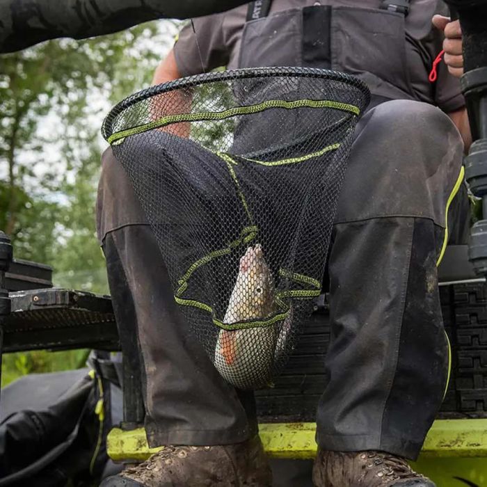 The mesh on this landing net has been made from an anti-snag mesh which allows barbed hooks to be easily removed in the event of hook ups, saving you time during your fishing session, so you don’t have to keep changing hooklengths. For quick and easy netting of fish these landing nets feature a wide mesh and a non-spook black aluminium rim and mesh. Matrix have finished this landing net head off with an anti-corrosive metal thread allows this fishing net to be used with a variety of landing net handles. Available in sizes of small and medium, this range of landing net heads will handle any fish you are likely to encounter on natural venues, when match fishing.