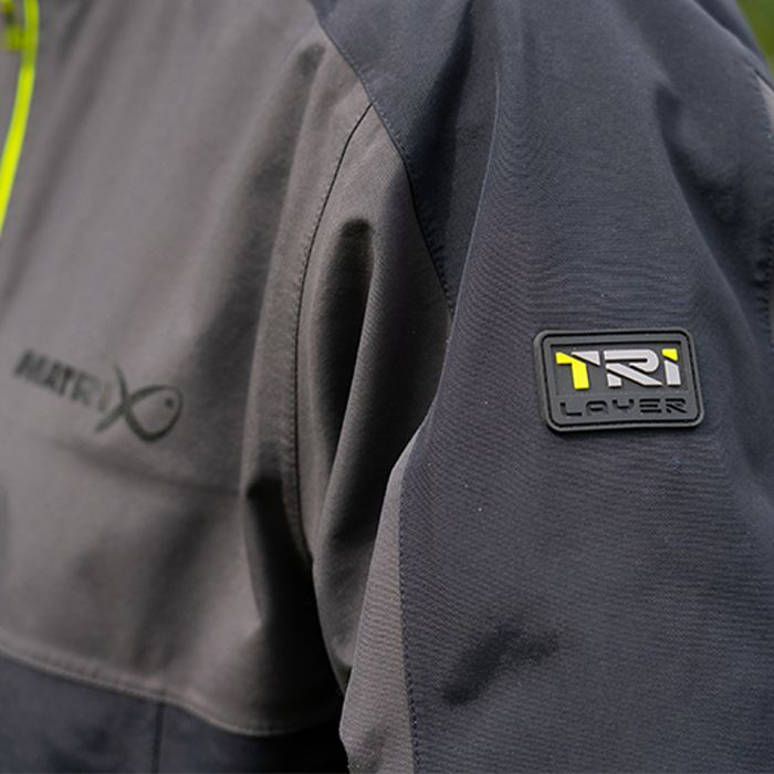 De Tri-Layer Jas 30K van Matrix is gemaakt van drielaags versterkt nylonweefsel met PU coating en volledig getapete naden. Met een waterdichtheid van 25000 mm en een ademend vermogen van 3 kN houdt deze jas je warm op die natte dagen aan de oever.