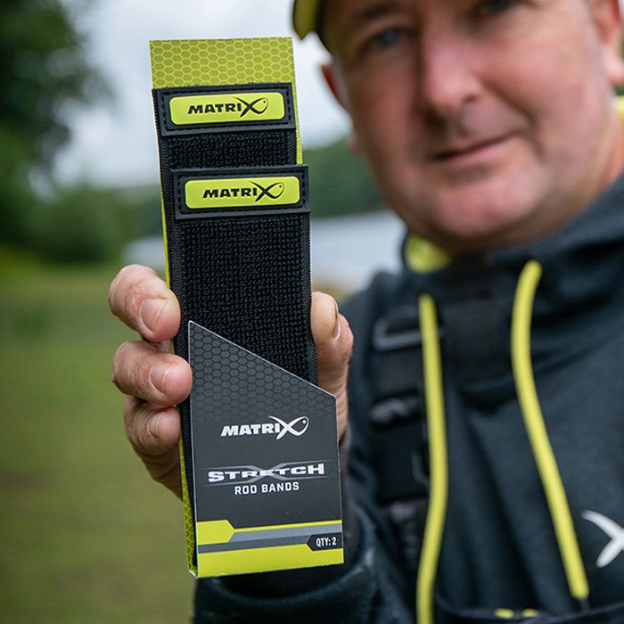 De Matrix X-Stretch Hengel Banden x2 zijn ontworpen om opgetuigde hengels tijdens het transport veilig bij elkaar te houden. Ze zijn verkrijgbaar in twee lengtes en zijn bedoeld voor gebruik op de tip en het eind gedeelte van de hengel.