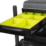 Plaats je vismateriaal in de ruime opbergvakken en zijladen, zodat je alles binnen handbereik hebt tijdens het vissen. De zijladen zijn ideaal voor het opbergen van kleinere items zoals haken, dobbers en aas, terwijl de grotere compartimenten geschikt zijn voor grotere benodigdheden zoals spoelen, voer of accessoires.