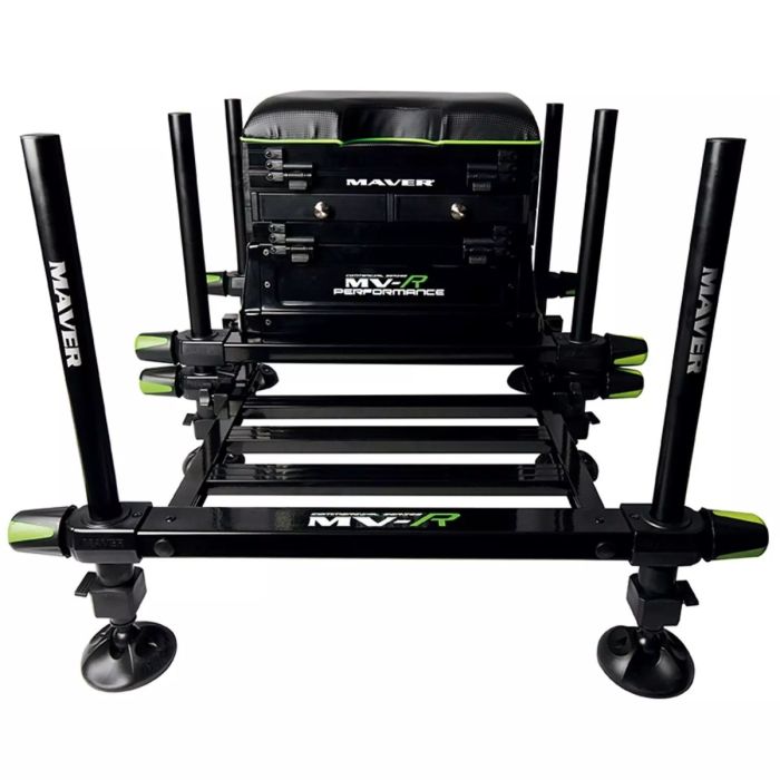 De zitting zelf heeft een anti-memory zitkussen met geborduurde Maver-logo's voor een comfortabele stoeloptie bij de oever. Daarnaast is de zitbox voorzien van zes telescopische geanodiseerde poten (waarvan twee met het Maver-logo) die in combinatie met de opvouwbare industriële kracht, anti-slip voetplaat maakt, een gepersonaliseerde comfortmogelijkheid voor de moderne hengelaar. De poten kunnen niet alleen worden ingesteld op de juiste hoogte voor het type dek, knijper of oever waarop u zit, maar ook voor de hoogte van de visser. De compressiepootbevestigingsblokken en grote draaibare moddervoeten zorgen ervoor dat de poten niet in de modder wegzakken of samenpersen met het gewicht.