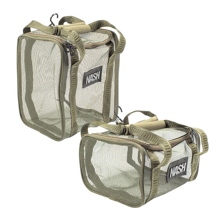A great bait carryall as well as an air dry bag; Stiffened frame zipped bait bags; Smart metal Nash logo to keep frozen or stabilised bait in prime condition; Anti-rot mesh construction for air circulation prevents moisture build up; Two Small Airow Bags ft inside a 17 litre Nash bucket, or one large Airow Bag; Dimensions:; Small: 23cm W x 13.5cm H x 20cm D; Large: 23cm W x 27.5cm H x 20cm D;