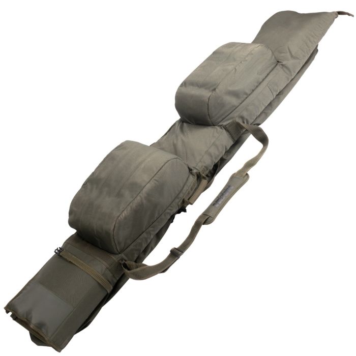 Available in 3 rod and 5 rod holdall capacities; Three section fold down aluminium spine stiffener; High impact double thickness foam lining; Heavy duty main zip and stress point reinforcement; Stiffened foam and eece lined reel protection; Two zipped external pockets for nets, retainers, banksticks and pods;