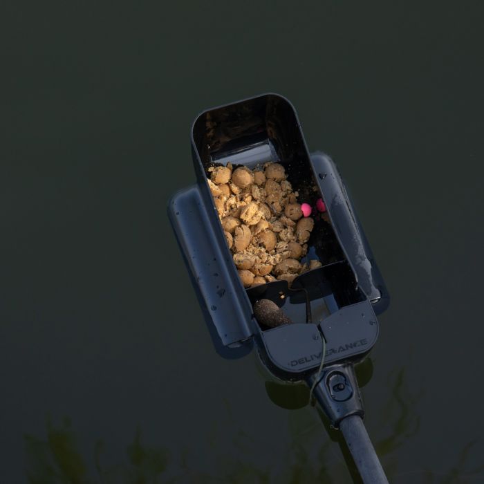 De Bushwhacker Aas Stok wordt ook geleverd met een zelfdrijvende lepel. De verwijderbare lepel heeft een dubbel ingebouwd drijfvermogen voor volledige stabiliteit zonder extra netten, zelfs op afstand of in woelige omstandigheden, en houdt ongeveer een kilo aas vast.