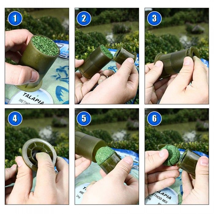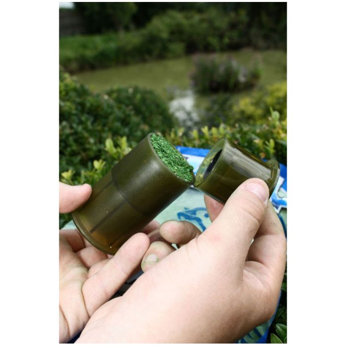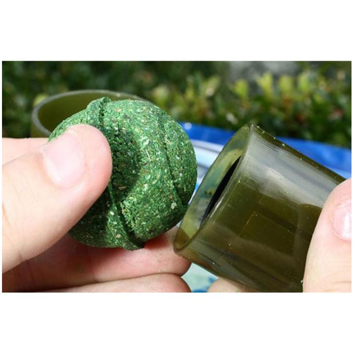 Om te gebruiken, vult u simpelweg het grote deel van de Ball Maker met uw keuze aan grondvoer of pellets, steekt u het bovenste gedeelte in, knijpt u in en laat los! Je blijft zitten met een compacte bal lokaas klaar om te worden gekatapulteerd, of anderszins verdeeld, in je vispartij.