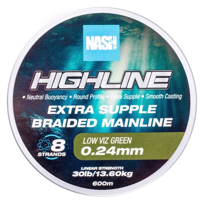 De Nash Highline Green Floating Lijn is een hoogwaardige gevlochten lijn ontworpen voor het karpervissen. Deze lijn onderscheidt zich door zijn drijvende eigenschappen, wat hem ideaal maakt voor verschillende visomstandigheden. De groene kleur van de lijn helpt deze te camoufleren in waterrijke omgevingen, waardoor het minder opvalt voor de vis.