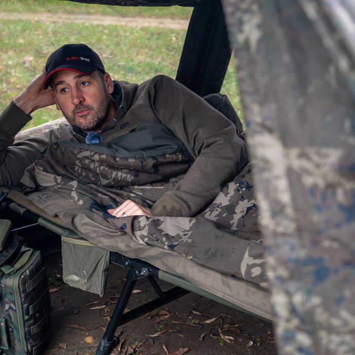 Comfort verzekert door de 40mm dikke foam matras en een camou vier seizoenen dekbed gevuld met hollow fibre en met interne flappen om sneller om te warmen en de warmte binnen te houden.