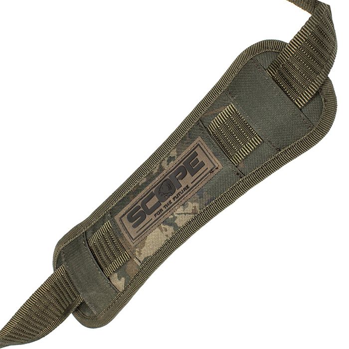 Voor het draaggemak bieden de foedralen elastische comforthandvaten en een gewatteerde, verstelbare schouderriem. Deze foedraal is mooi afgewerkt met Scope-camopatroon om in te passen bij de oever.