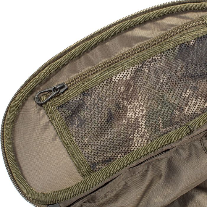 De tas is gemaakt van een lichtgewicht peachskinmateriaal dat zorgt voor een camoflagpatroon dat niet alleen overeenkomt met het Scope-assortiment, maar dat u discreet zal houden als u op de oever zit. Dit verkleint het risico op schrikken van de vis.