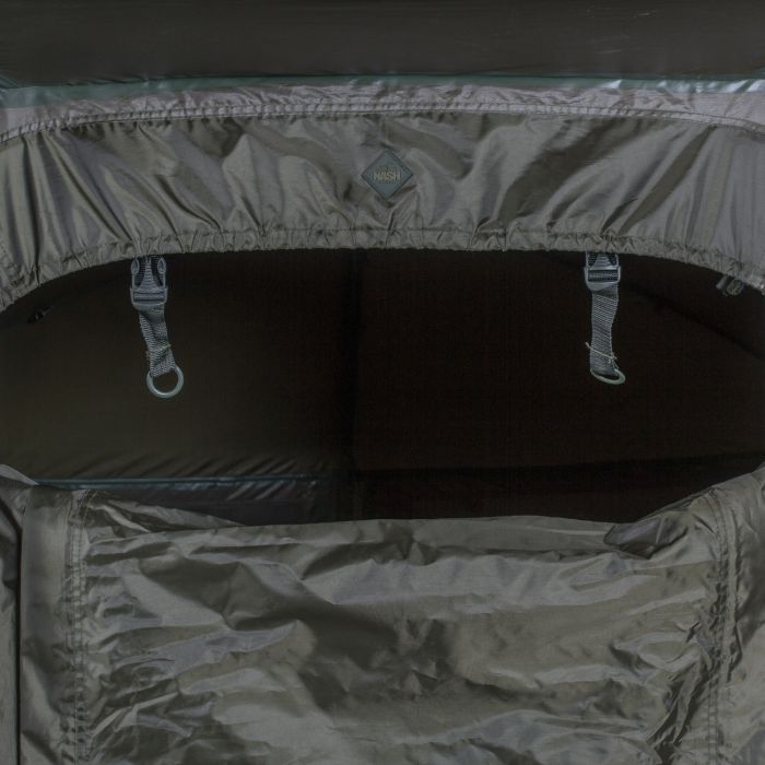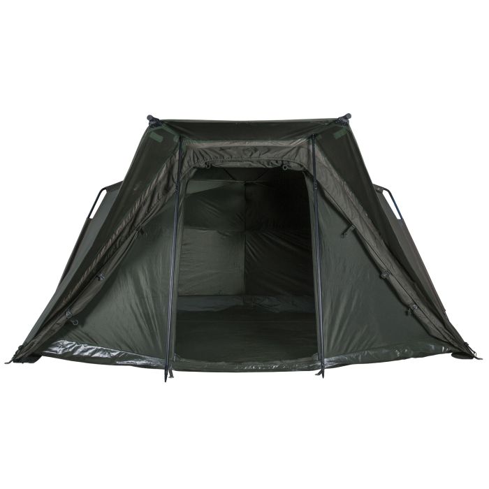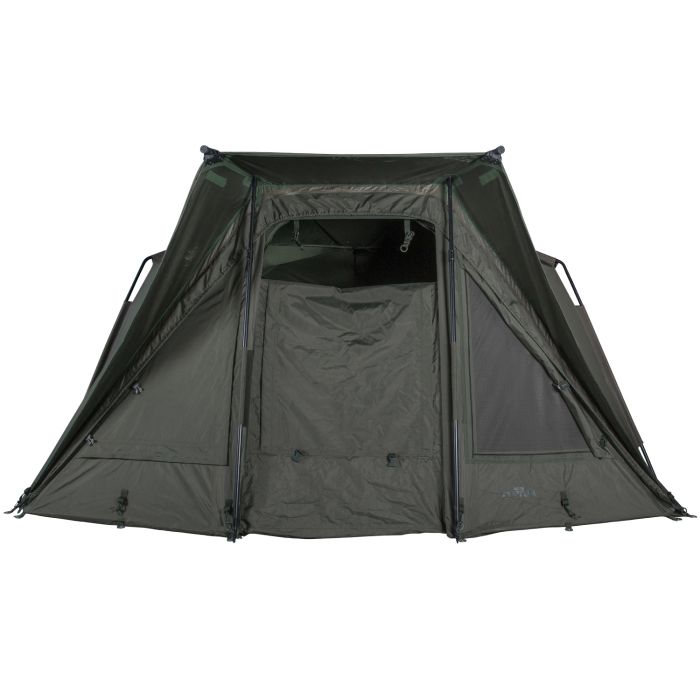 Het voorpaneel van de bivvy kan volledig worden teruggerold, waardoor u een open front-systeem krijgt. Beide zijpanelen zijn voorzien van horren (evenals stevige opvullingen) en de voordeur heeft zowel solide, mesh als transparante PVC raamopties. De voordeur kan ook in de zeer koudste maanden in een brievenbusstijl worden gebruikt - perfect voor gebruik als u wilt genieten van het uitzicht over uw karperhengels zonder te lijden aan de gevolgen van slechte weer.