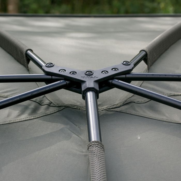 De eerste verbeterde functie die je op de T1 en T2 Titans zult zien, is het met glas gevulde nylon blok. Dit is een ultralicht en ultrasterk blokontwerp dat het totale gewicht van de bivvy drastisch vermindert terwijl de maximale sterkte behouden blijft. Het verbetert ook de stijfheid van de bivvy en het Titan-systeem is volledig verstoken van spanstangen of riemen. Aan de waterkant instellen is supersnel, omdat je niet rond de bivvy riemen hoeft te spannen om ervoor te zorgen dat het bestand is onder alle weersomstandigheden. In plaats daarvan waaier je de bivvy simpelweg uit vanuit het centrale blok en zet je hem vast met de meegeleverde T-haringen. Dit zorgt ervoor dat u de hoeveelheid tijd die u aan het vissen aan de oever besteedt kunt maximaliseren, zodat u minder tijd kwijt bent aan het verspillen aan uw uitrusting op de waterkant.