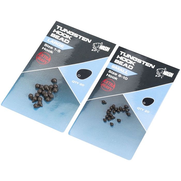 Maximale dichtheid en hoge grip Tungsten Haak Kralen voor trapping hairs, aasschroeven en tuigringen op anti-eject platforms. Klein voor haakmaten 6-10. Groot voor haakmaten 1-5 haken.