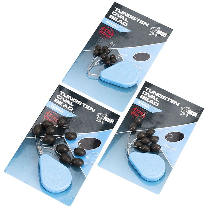 Op draad gemonteerde high grip Tungsten ovale kralen. Gebruik dit om naked chods vast te zetten of als tegengewicht voor pop-ups. Evenals bufferparels voor knopen op running tuigages. Verkrijgbaar in 4mm, 6mm en 8mm.