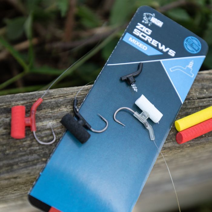 Speciale zig-haakkickers met een geïntegreerde aasschroef voor het direct monteren van schuim, plastic, kurk en pop ups zonder dat er een naald of haar nodig is. Verkrijgbaar in zwart, geel, rood en transparant. De zig-haakschroeven bieden snellere haakaasveranderingen aan, verbeteren de mechanica voor verbeterde haakdraaiing en meer haken en helpen zowel het zicht als het gevoel van de haak te verbergen. Meerdere kleuren staan u toe om kleur te gebruiken als extra attractor om sneller te nemen of een meer ingetogen presentatie te kiezen wanneer de voorwaarden of de hengelende druk het vereist. Een handige Gemengde Kleuren verpakking biedt alle mogelijkheden samen. Vier schroeven per verpakking. Elke verpakking bevat op kleur afgestemde schuimhaakjes.
