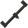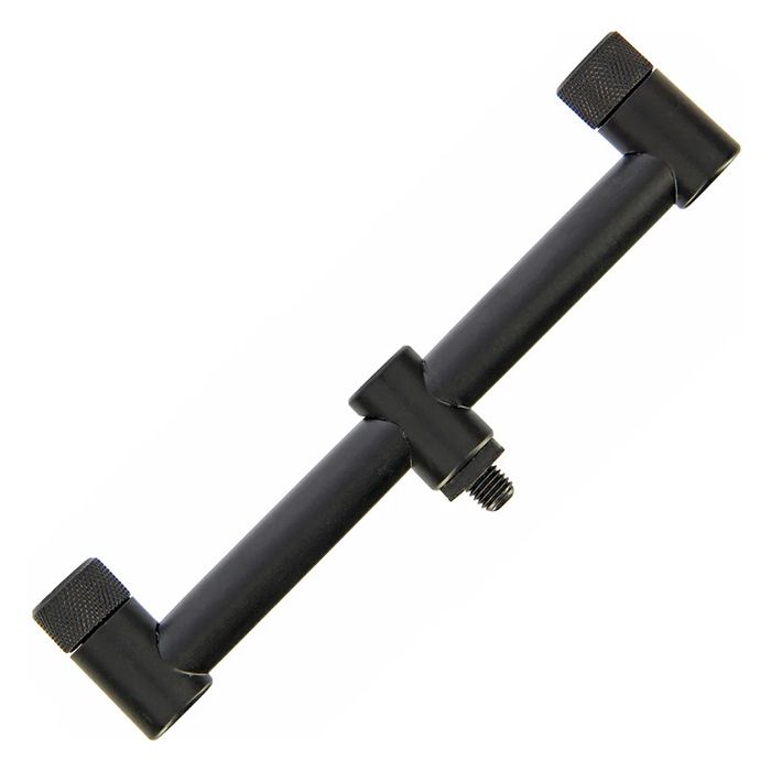 A sturdy, chunky black aluminium buzz bar designed for a neat two‑rod setup. At 18 cm wide, it’s ideal for compact spacing, while the multi‑lock design helps keep alarms or rests aligned once tightened.