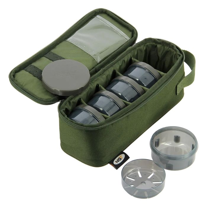 A 600D polyester, deluxe glug bag which includes 5 pots with drip tray, storage for baiting tools and hair stops, and a carry handle.
