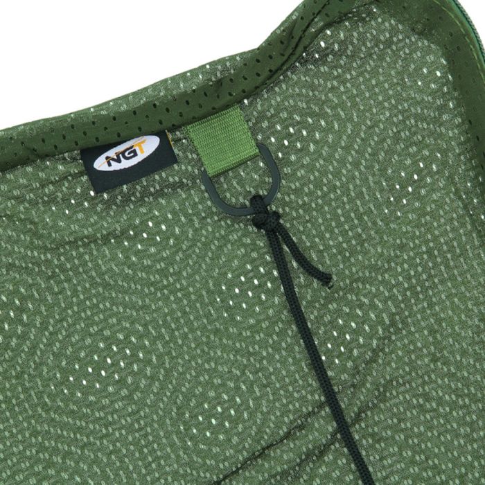 A large fish friendly soft mesh carp sack with zip and drawstring.