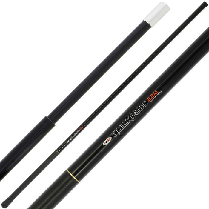 De NGT Quickfish telescopische netsteel kan gebruikt worden door alle netten. De steel meet uitgeschoven 2.2m meter lang en bestaat uit 2 delen en is dus compact te vervoeren. Een 2.2m (7.3ft), telescopische net handgreep ideaal voor match visssen.