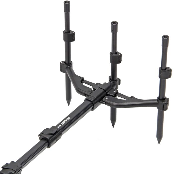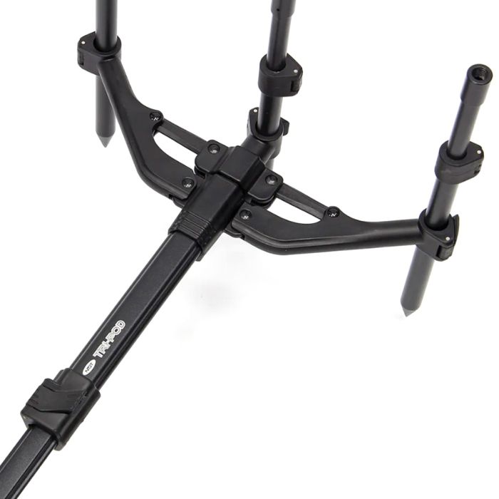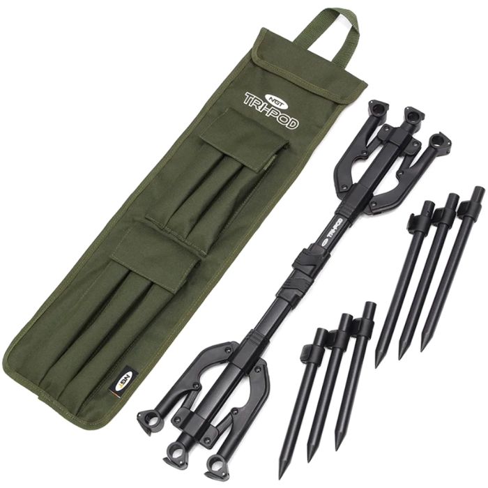 Fully adjustable NGT 'TRI-POD' with a durable case. Unique quick opening/closing mechanism enabling easy setup. Featuring a textured/matt black finish with asymmetric bank sticks front to back. Features include aluminium round tubes, stable main body, easy to fold, complete with carry case.