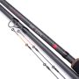 Deze krachtige fast-tapered feederhengels zijn gemaakt voor het werpen van grote afstanden op groter water. Groot voordeel van deze hengels is de snelle actie welke zorgt voor het eerder contact hebben met de vis bij het aanslaan op grote afstand. Voor het werpen van afstanden is de hengel uitgevoerd met grotere geleide ogen tot en met de top. De hengels worden geleverd met 2 carbontoppen en er zijn toppen leverbaar van 1oz t/m 6oz. Voor ieder wat wils dus die wil gaan vissen op voorn, bliek, brasem en zelfs karper op elke afstand!