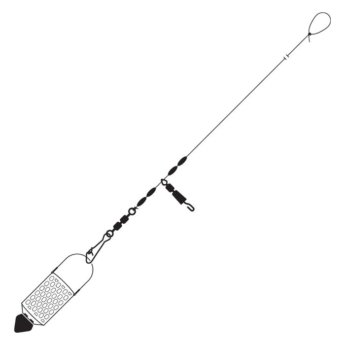 De perfecte Helicopter rig, klaar voor gebruik en direct uit de verpakking. Bevestig hem eenvoudig aan je hoofdlijn, plaats een voerkorf aan de Hook-snap wartel en bevestig een onderlijn aan de Quick-change wartel. De Quick-change wartel zit tussen een set stoppers zodat je de hoogte zelf kunt aanpassen.