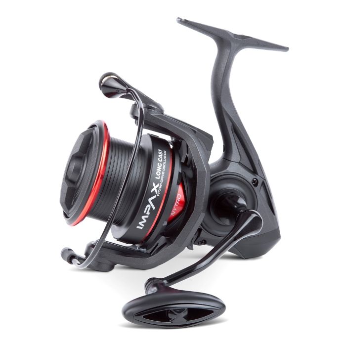Met de nieuwe Impax Long Cast 5500 weten we dat we iets bijzonders in handen hebben. Mocht je gedacht hebben dat we onze prijs/kwaliteitsverhouding niet nog iets konden aanscherpen, wacht dat maar tot je deze nieuwe Feedermolen in de hand hebt. Voorzien van een wormshaft opspoelsysteem, een long-cast spoel én een line-guard systeem om te voorkomen dat de lijn onder spoel terecht kan komen. Naast een zeer stijlvol ontwerp in matzwart met enkele Nytro rode accenten, beschikt de Impax Long Cast 5500 ook over een quick-drag, multi-disc slipsysteem en een oversized slipknop. Bovendien is de spoel voorzien van twee grote metalen lijnclips, en is de rotor voorzien van een druppelvormige lijnrolhouder en een dikke, sterke beugel om vervorming tijdens het opbergen te voorkomen. De slinger kan eenvoudig worden ingeklapt voor transport.