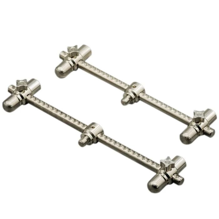 OMC Elbowz Roestvrijstalen Buzzer Bar: De Ultieme Veelzijdige Buzzer Bar voor Vissers. De OMC Elbowz Roestvrijstalen Buzzer Bar is ontworpen om u maximale flexibiliteit en gebruiksgemak te bieden, waardoor het een onmisbare toevoeging is aan het arsenaal van elke visser. Gemaakt met hoogwaardig 316 roestvrij staal, zijn deze bars niet alleen robuust en duurzaam, maar bieden ze ook ongeëvenaarde aanpasbaarheid. Verkrijgbaar in een reeks maten om aan uw visbehoeften te voldoen, de OMC Elbowz Buzzer Bar is geschikt voor vissers met 2 of 3 hengelopstellingen, en komt in slanke, standaard en brede opties. Beschikbare Maten: 2 Hengels / Smal: 6 & 5 Inch 2 Hengels / Standaard: 8 & 7 Inch 3 Hengels / Smal: 9,5 & 7,5 Inch 3 Hengels / Standaard: 11,5 & 9,5 Inch 3 Hengels / Breed: 13,5 & 11,5 Inch. Elk paar bars wordt geleverd met 4 schroefdraad doppen om de schroefdraden te beschermen als ze niet in gebruik zijn, wat de levensduur van uw uitrusting verzekert. Voor degenen die een andere esthetiek verkiezen, is de OMC Elbowz Buzzer Bar ook beschikbaar in zwart geanodiseerd aluminium. De ingenieuze verstelbare en verwijderbare fittingen van de OMC Elbowz Buzzer Bar maken het een fluitje van een cent om te schakelen tussen bars en enkele sticks. Met volledig verstelbare bevestigingen kunt u uw opstelling aanpassen aan uw visvoorkeuren, of u nu kiest voor een T-Bar of Goal-Post opstelling, voor en achter. Het innovatieve ontwerp van de OMC Elbowz Buzzer Bar maakt het een must-have voor vissers die veelzijdigheid in hun uitrusting eisen. Ongeacht uw voorkeurs hengelopstelling of de omstandigheden waarin u vist, deze bars kunnen moeiteloos worden aangepast aan uw behoeften. Als het gaat om stabiliteit en betrouwbaarheid, blinkt de OMC Elbowz Buzzer Bar uit. Vervaardigd uit hoogwaardig 316 roestvrij staal, zijn deze bars gebouwd om de ontberingen van het vissen te weerstaan en corrosie in ruwe omgevingen te weerstaan. De stevige constructie zorgt ervoor dat uw hengels veilig en stabiel blijven, zodat u zich kunt concentreren op het binnenhalen van die grote vangst. Met meerdere maatopties is de OMC Elbowz Buzzer Bar geschikt voor vissers van alle niveaus en voorkeuren. Of u nu vist met 2 of 3 hengels, en of u nu een smalle, standaard of brede opstelling nodig hebt, er is een OMC Elbowz Buzzer Bar die perfect voor u is. De OMC Elbowz Roestvrijstalen Buzzer Bar biedt: Constructie van hoogwaardig 316 roestvrij staal voor duurzaamheid en corrosiebestendigheid Verstelbare en verwijderbare fittingen voor maximale flexibiliteit Eenvoudig schakelen tussen bars en enkele sticks T-Bar of Goal-Post opstellingsmogelijkheden Meerdere maatopties voor 2 of 3 hengelopstellingen 4 schroefdraad doppen voor draadbescherming als ze niet in gebruik zijn Zwarte geanodiseerde aluminium versie beschikbaar. Verbeter uw viservaring met de OMC Elbowz Roestvrijstalen Buzzer Bar en geniet van ongeëvenaarde aanpasbaarheid en robuustheid in één stuk uitrusting. Ontdek vandaag nog het verschil dat deze innovatieve buzzer bar kan maken voor uw visavonturen!