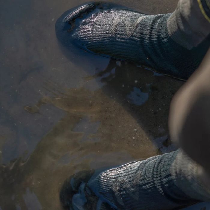 **Vierwegstretch**: De nauwsluitende stretch van deze sokken verhoogt het comfort en maakt ze geschikt voor elke voetbeweging, wat ze ideaal maakt voor actieve vissers.