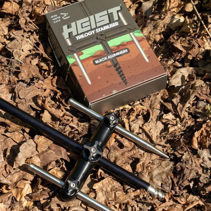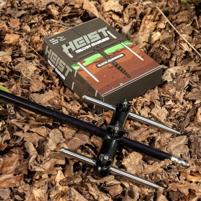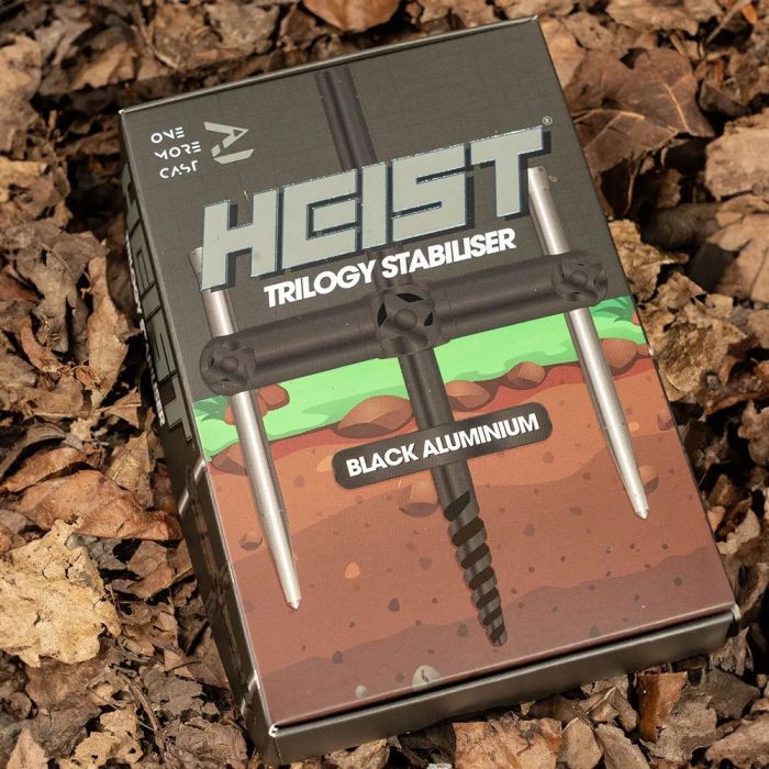 OMC Heist Stabiliser Black Aluminium, The OMC Heist Trilogy Stabilisers are precision engineered, made with the finest materials and delivered with intricate design features to bring you long lasting level bankware. The Heist Troilogy Stabiliser has been developed to work in tandem with the Heist Bankstick range, giving you the ability to create a rock solid stable set-up for those that are serious about their Angling! With the Dual Stainless moving spikes, you can penetrate the earth on both sides of your Banksticks for optimum stability. The Centre bar comes with 3 Captive Custom Designed One Touch Thumbscews, meaning adjustability with minimal effort.