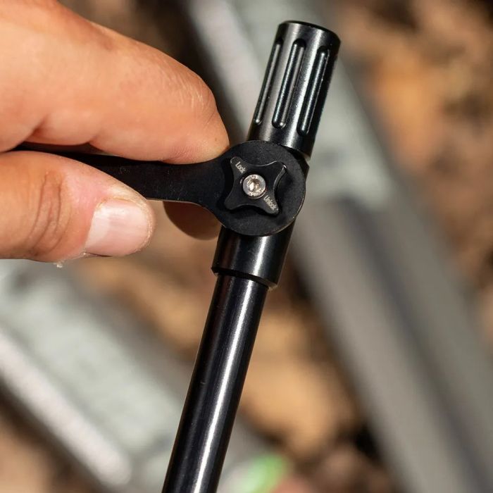 Het twist-lock mechanisme van de OMC Heist Stabiliser zorgt voor een veilige en stevige bevestiging aan de bankstick. Dit mechanisme is eenvoudig te bedienen, wat ideaal is voor vissers die snel hun opstelling willen aanpassen zonder gedoe. Met een eenvoudige draai kun je de stabilisator vastzetten en weet je zeker dat hij goed blijft zitten, zelfs bij sterke wind of onverwachte bewegingen. Dit mechanisme maakt het ook makkelijk om de stabilisator snel los te maken wanneer je je setup wilt veranderen of verplaatsen.