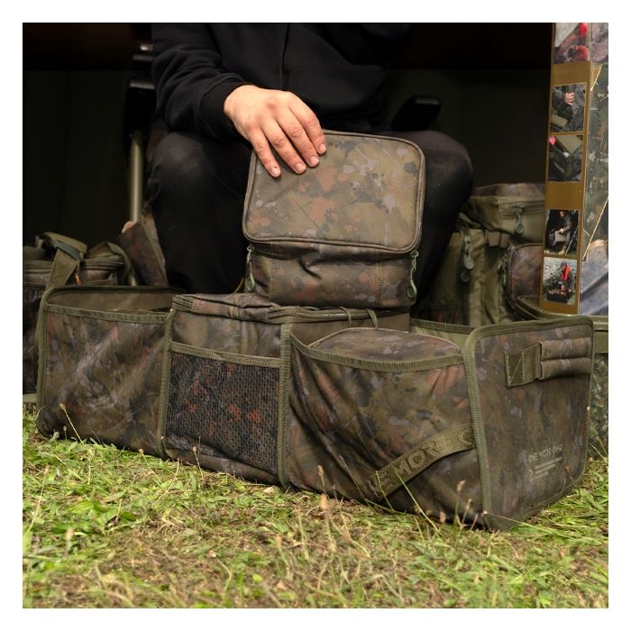 Een uniek opvouwbaar Concertina 500D Polyester OMC Custom Splash Camo Design, betekent dat dit item van compact gaat Opgeborgen... om in seconden te openen en klaar te maken voor actie als je extreem handig Bivvy organisator. U kunt de rommelige clucker als een gemakkelijk te transportbaar werkapparaat houden, zodat u dit kunt SNEL Til items van de bedchair en op de vloer van uw bivvy of houd er zelfs een op uw boot voor vitale componenten wanneer u op het meer bent. Een centraal ritssluiting voor ritssluiting geeft u nog meer veelzijdigheid en opties om de eenvoudige schone TPU -interne stof overal te ondersteunen.