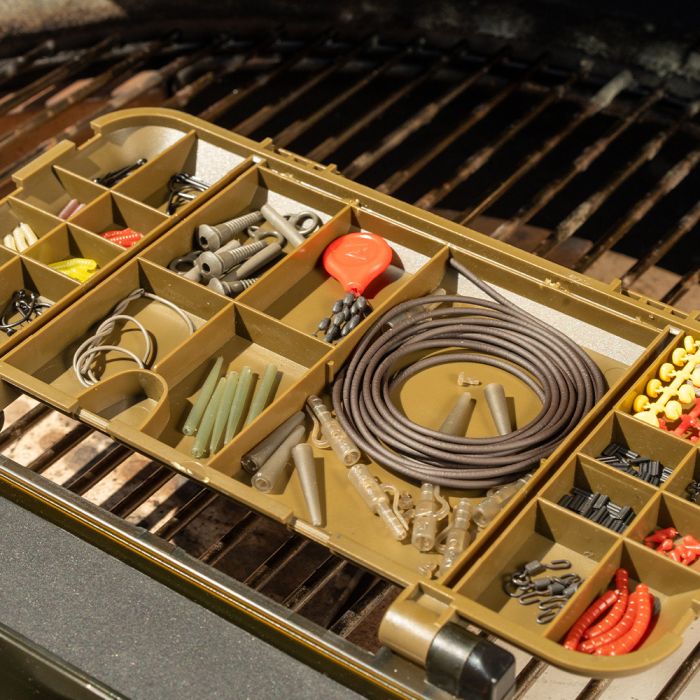 De OMC The Mixed Grill Loaded Tackle Box bevat een breed scala aan accessoires in verschillende maten en types. Hierdoor kun je flexibel inspelen op verschillende vistechnieken en omstandigheden. Of je nu vist met een hair rig, een chod rig of een standaard feeder rig, deze tackle box heeft alle benodigde onderdelen om je rigs op te bouwen en aan te passen. De selectie van haken, wartels en clips is zorgvuldig samengesteld om te voldoen aan de eisen van moderne vissers.