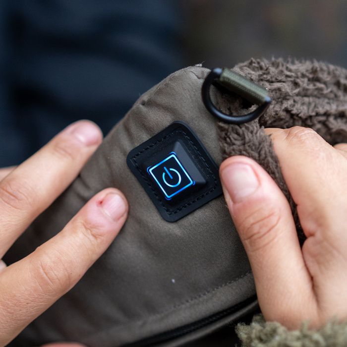 Dit wordt allemaal aangedreven door de USB Connectable Battery (niet inbegrepen) die is opgeborgen in het buitenste zip -compartiment dat is ondergebracht tussen de donzige super comfortabele handvoering en OMC -merk Peach Skin Forest Green Outer.
