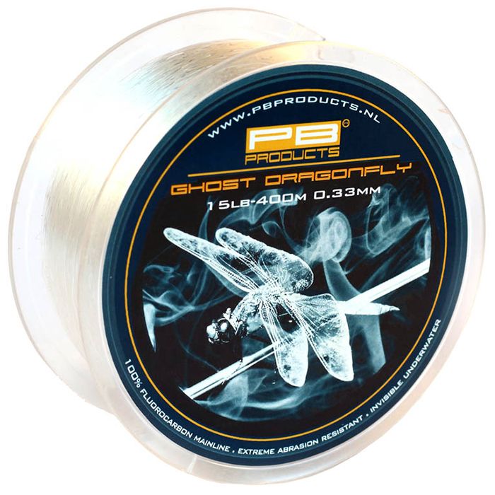 Ghost Dragonfly van PB Products is een prachtige 100% Fluorocarbon hoofdlijn die extreme soepelheid combineert met een hoog soortelijk gewicht, waardoor deze Fluorocarbon zinkt als een baksteen. Daarnaast is Ghost Dragonfly extreem schuurbestendig. Door de unieke samenstelling van diverse grondstoffen zal deze lijn geen 'vuil uit het water' oppikken en kan hij lang gebruikt worden.100% Fluorocarbon Hoofdlijn. Onzichtbaar onder water. Verpakt op spoelen van 400 meter en verkrijgbaar in diverse diameters.