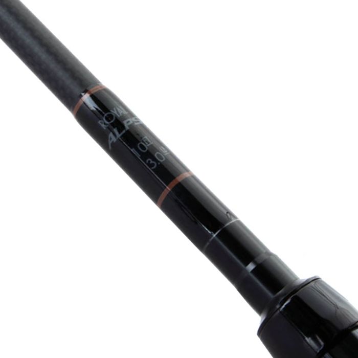 Zoals de naam al doet vermoeden, zijn de Royal Alps hengels voorzien van een luxe Alps reel seat. Deze reel seat is voorzien van een dubbele locking ring zodat elke reel in de reel seat kan worden geplaatst en op zijn plaats blijft! De Royal Alps hengels hebben een gevlochten carbon afwerking over de gehele hengel. Naast de hoogwaardige reel seat, is de Royal Alps uitgerust met Seaguide lijngeleiders. Dit is een zeer sterke ring die de SIC binnenring op zijn plaats houdt. De Royal Alps hebben een mooie grip met een roestvrijstalen butt cap aan het uiteinde. Verkrijgbaar in 10ft 2.75lb en 10ft 3lb.