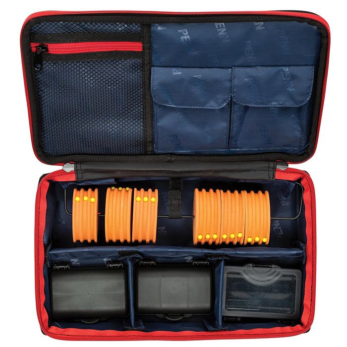 De Penn Tuig Station Zeevistas is gemaakt van een hardcase materiaal met 600D polyester met PVC coating; hierdoor is de tas erg makkelijk schoon te houden. Daarnaast komt de tas met 3 kleine tackle dozen zodat je al je klein materiaal altijd bij je hebt. Ook heeft het tuig station 6 grote EVA tuig plankjes die tot 18 verschillende rigs kunnen vasthouden. In de tas zelf zitten verschillende mesh zakken zodat je ook genoeg ruimte hebt om andere kleine items mee te kunnen nemen. Dit is de ideale tas voor de fanatieke surfcaster!