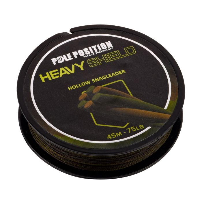 Vis jij geregeld dichtbij obstakels, over steile taludranden of op serieuze rivieren dan biedt onze Heavy Shield uitkomst. Deze loeisterke, schuurbestendige voorslag is prachtig soepel en komt in een ideale camouflage kleur zodat hij mooi wegvalt tegen vrijwel elk bodemtype. Dit holle voorslag materiaal is opgebouwd uit kwalitatief hoogwaardige vezels en daar komt ook de schuurbestendigheid en trekkracht vandaan. Aangezien het materiaal goed te splicen is, creëer je in een handomdraai een lus of knooploze verbinding. Ideaal te combineren met mono-en fluoro carbon hoofdlijnen. Komt op een spoel van 45m bij een trekkracht van 75lb.