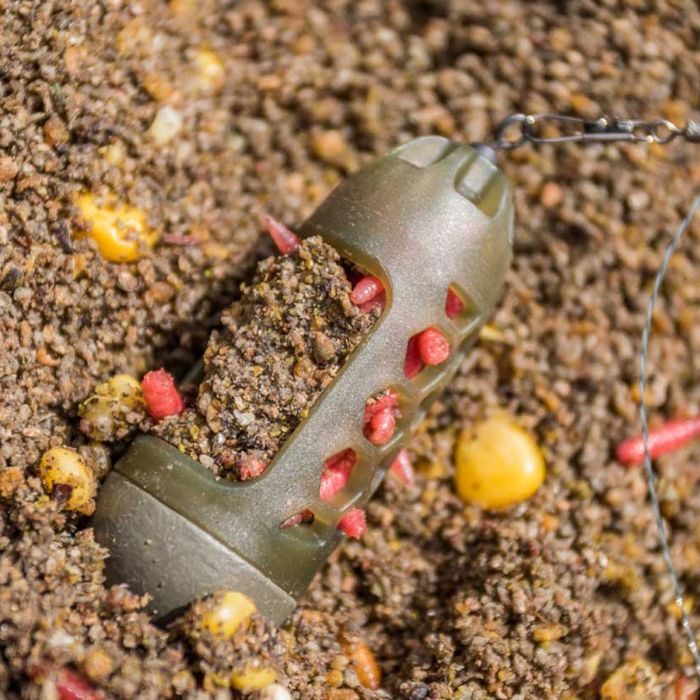 Met het naar voren geplaatste gewicht kun je je lokvoer op grotere afstand plaatsen dan ooit tevoren, waarbij er onder water een wolk door de diverse waterlagen ontstaat die de vis naar de visplek lokt.