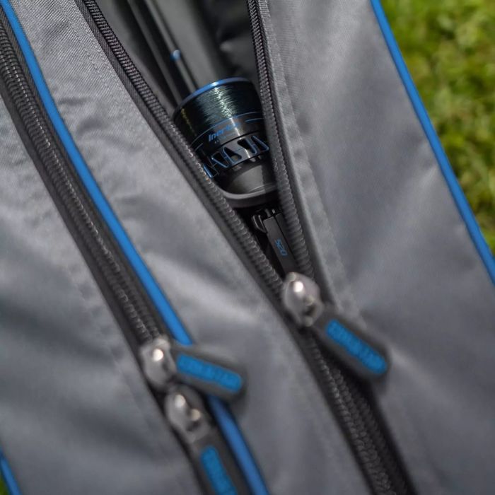 De foedraal is eenvoudig te gebruiken met de interne klittenbanden om de hengels op hun plaats te houden. Als u kortere hengels opbergt kunnen deze gespreid worden met behulp van de interne hengel eind zakjes om meer ruimte rond de molens te creëren. Er is ook een centraal tussenschot om de molens tijdens het transport uit elkaar te houden, zodat ze niet tegen elkaar botsen en krassen of andere ernstige schade veroorzaken.
