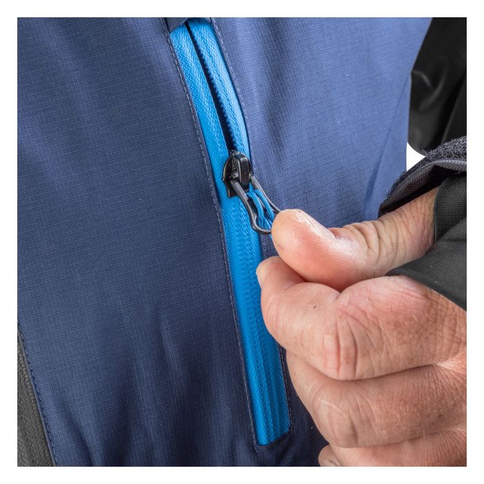 Om je te beschermen tegen de regen die van je paraplu en in je nek druppelt, heeft dit jas een hoge nekvorm met fleece. Om de regen buiten te houden is er een waterdichte ritssluiting op de jas en op je zakken en neopreen manchetten. Deze manchetten zijn voorzien van duimgaten zodat je handpalm warm blijft en je toch de toegankelijkheid hebt om je polsstok te grijpen met een moment van aandacht.