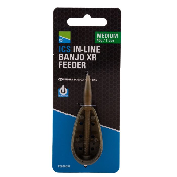 Als Teil des "Interchange Systems" von Preston ermöglicht der Banjo XR Feeder dem Angler auch das Wechseln von Feedergrößen und Gewichten, ohne dass das gesamte Vorfach zerlegt werden muss.