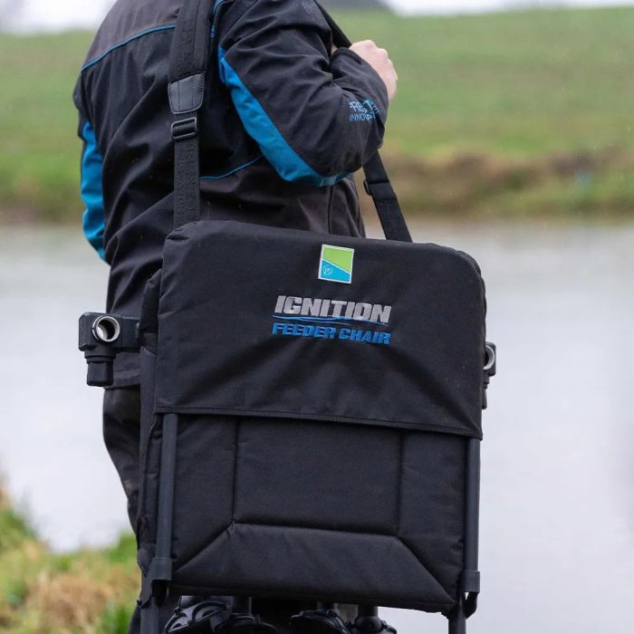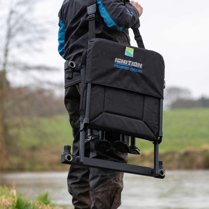 - **Lichtgewicht en Draagbaar**: Ondanks zijn robuuste constructie is de Preston Ignition Feeder Stoel Combo verrassend licht van gewicht. Dit maakt het eenvoudig om de stoel te vervoeren naar en van je visplek, zonder dat het een zware last wordt.