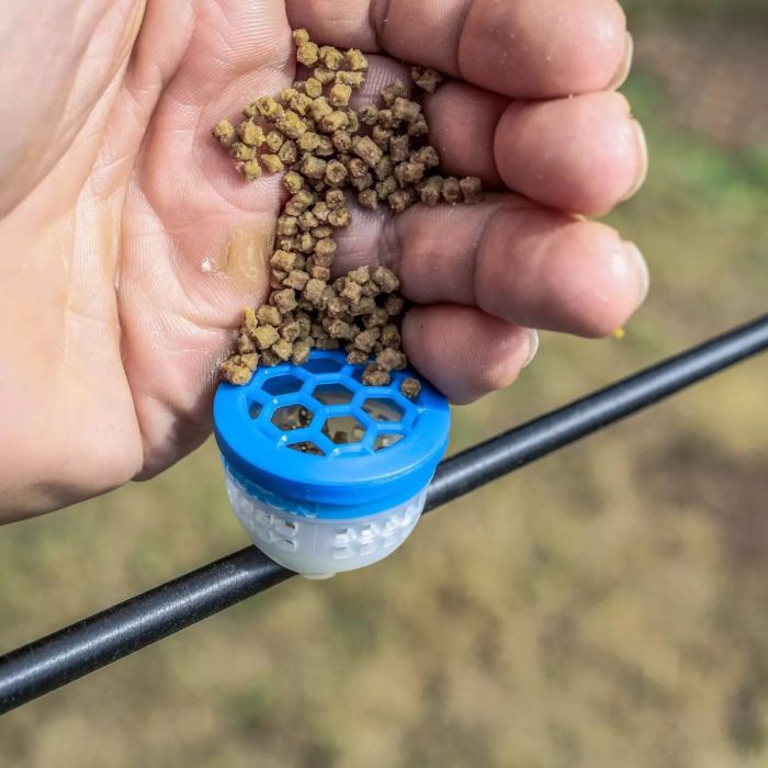 Preston Mega Soft Cad Pot. De Mega Soft Pot is ontworpen voor het voeren van grotere hoeveelheden aas, ideaal voor vijvervisserij. Deze supergrote versie van de populaire Soft Cad Pot heeft alle unieke eigenschappen en is gemaakt van hetzelfde lichtgewicht, rubberen materiaal dat mogelijke schade aan de topkit voorkomt. Met een grotere boordiameter die zich leent voor power kits en margepolen gaat het geperforeerde ontwerp elk vacuümeffect tegen dat aas kan vrijgeven van een conventionele pot. Ideaal voor een breed scala aan aas zoals pellets, maïs, hennep, grondvoer en vlees.