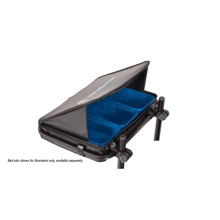 EVA vierkante kom met stugge hoepel en rits. De OffBox Pro-schanierpunt kan aan zowel de zitbox- als platformpoten worden bevestigd en kan, eenmaal op de juiste plek, in de juiste positie worden gedraaid. Kan ook zonder de aasbakjes worden gebruikt als grote voerbak. Meegeleverde inserts 30 mm rond, 25 mm rond, 23 mm off-box.
